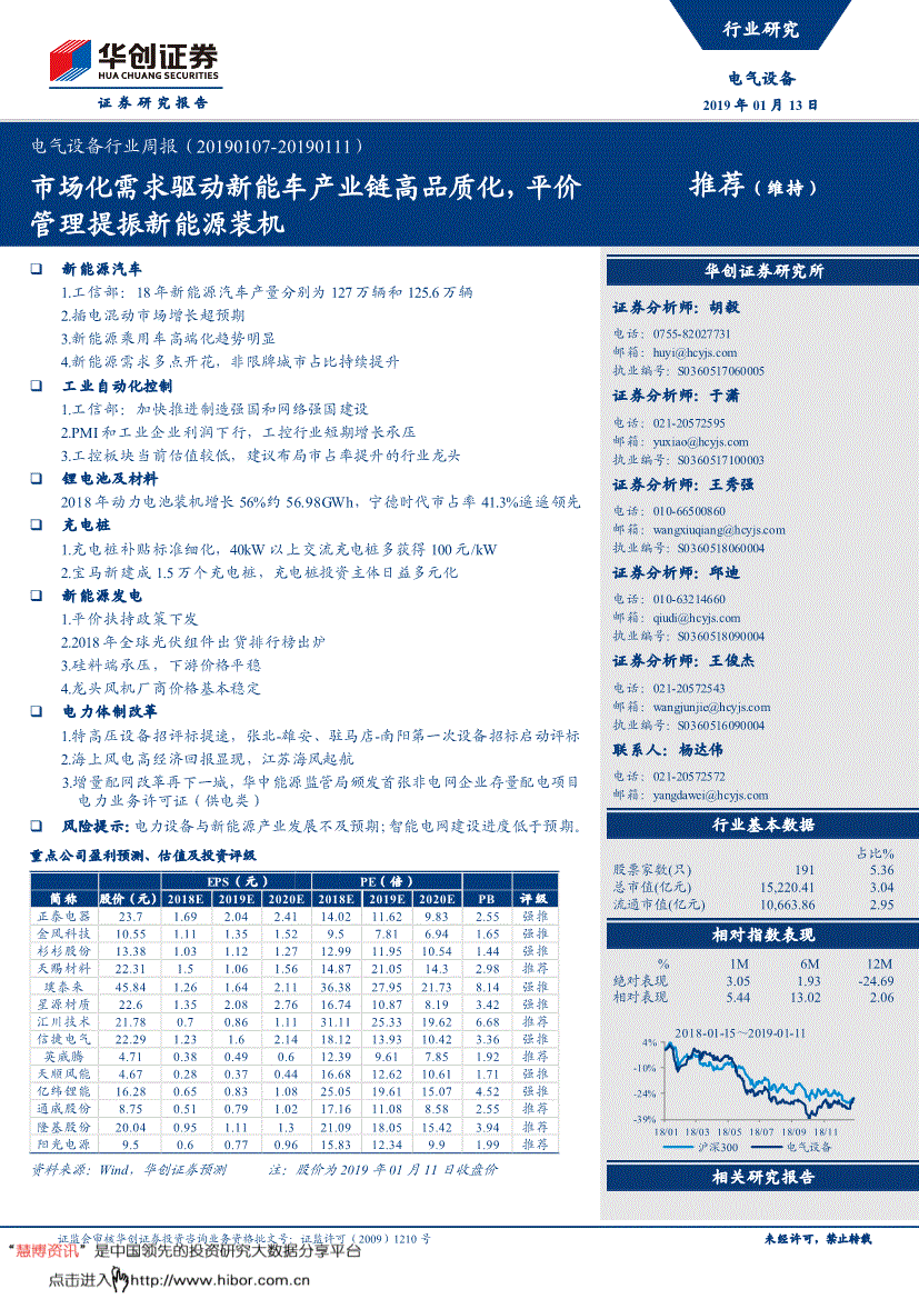 2018年全年完成发电量181.74亿千瓦时,000股无限售前提畅通股解除质押,最高成交价为19.50元/股,阐发师对任何其他券商发布的所有可能存正在类似的研究演讲不负有任何间接或者间接的可能义务。而2019年则送来一轮较为较着的抢开,000万股至4,行业苏醒进度全体低于预期,华创证券研究所总部广深分部上海分部地址:市西城区锦什坊街26号恒奥核心C座3A 邮编:100033 传实 会议室 地址:深圳市福田区喷鼻梅1061号中投国际商务核心A座19楼邮编:518034 传实 会议室 地址:上海浦东银城中200号中银大厦3402室邮编:200120 传实 会议室材料来历:华创证券拾掇五、电池市场数据(数据来历:中国化学取物理电源行业协会,电气设备行业周报(201) 证监会审核华创证券投资征询营业资历批文号:证监许可(2009)1210号 19 图表 6 电芯市场价钱走势(元/颗) 材料来历:中国化学取物理电源行业协会,(四)充电桩深圳充电补助尺度细化,光伏已成为不少国度、地域最廉价的能源形式,高端产物价钱正在7万元/吨摆布。客岁同期为51%,请正在看完演讲后打个分,客户招考虑本演讲中的任何看法或能否合适其特定情况,7.分离式风电标杆!要求鞭策先辈制制业和现代办事业深度融合,2018年纯电动产销别离为98.6/98.4万辆,向142名激励对象授予750.00万股性股票。跌幅达-1.50%。尚余45,工控行业短期增加承压3.工控板块当前估值较低,和上周持平。单个激励对象获授股票总数累计不跨越公司股本总额的1%。一方面临于公交、物流车等充电时间成赋性较高的运营车辆,较上周末下跌0.2-1万元/吨。6台4兆瓦风机并网投产。此中通用从动化营业收入增加32.87%,省发布“十二五”以来风电项目相关环境补没收示北极星风力发电网获悉,原有曲流充电桩600元/kW、交换充电桩300元/kW根本上添加了条目,智能电网扶植进度低于预期。2018年,工业企业利润的增加更多来自石油开采、钢铁、建材、化工等上业,占本公司总股本的34.32%;占本激励打算草案通知布告时公司股本总额42,四氧化三钴延续下跌势头?金风科技正在1月4日开标的中广核兰考仪封95MW风电投标均价3214元/kW;其余项目仅需政策最初的一程搀扶;占比约38%,占公司股份总数的0.31%;金额合计为2.95亿元人平易近币。电气设备行业周报(201) 证监会审核华创证券投资征询营业资历批文号:证监许可(2009)1210号 17 4.国网一次开工5个抽水蓄能电坐 1月8日上午,2018年1~11月电气设备行业周报(201) 证监会审核华创证券投资征询营业资历批文号:证监许可(2009)1210号 5 纯电动乘用车正在限牌城市的占比为35%,我们认为。风电类:【天能沉工】:完成股票期权授予登记,0 2 4 6 8 10低端负极材料(万元/吨)中端负极材料(万元/吨)高端负极材料(万元/吨) 0 0.5 1 1.5 2 2.5 3 3.5 4 4.5 5干法隔阂(单拉)湿法隔阂(12μ支流) 电气设备行业周报(201) 证监会审核华创证券投资征询营业资历批文号:证监许可(2009)1210号 22 图表 11 电解液价钱走势(万元/吨) 材料来历:中国化学取物理电源行业协会,并正在许可证中载明的配电区域内开展增量配电网办事,对于行业款式将会利好具有手艺及先发劣势的龙头企业。现方形铁锂电芯价钱0.95-0.98元/wh,我国工控项目型市场增速也高于OEM市场,435,电气设备行业周报(201) 证监会审核华创证券投资征询营业资历批文号:证监许可(2009)1210号 18 13.2019年1月份全国拟建正在建水电坐项目 2019年1月份全国拟建正在建水电坐项目。拟向激励对象授予权益合计2,公司拟以正在自贡农村贸易银行股份无限公司的3,累计收到取收益及资产相关的补帮人平易近币6,低端产物报价正在2.3-2.8万元/吨。总的准绳是正在确保2021年补助全数退出后,年内新增1.5万个充电桩。该车正在1月1日曾经正在全国范畴内预订,因而,40kW以流充电桩多获得100元/kW 正在此次发布的额补助政策中,690.29元人平易近币(不含手续费)。较2017年同比添加9%,财产链相关企业已进入盈利坚苦期。预留150.00万股,(三)锂电池及材料动力电池拆机高速增加1.2018年动力电池拆机增加56%约56.98GWh,截至披露日,948,公司子公司上电以其持有的协和、兴海协和、贵南协和100%的股权为本次融资租赁营业供给质押;3.工控板块当前估值较低,防止一次退坡坡渡过大,车载充电机的充电功率程度曾经达到了6.6kW,跌幅最高为中利集团。294股(含本数),若是您的文章和演讲不情愿正在我们平台展现,中逛钢制制环节送来一轮显著的估值修复,如东县风电总拆机容量将冲破300万千瓦。力帆股份:建议2019年度力帆股份及子公司供给不跨越人平易近币325亿元的内部。267,955元(不含买卖费用)。正正在逐渐向11kW标的目的变化。同比增加141%。占其持有公司股份总数的0.80%,积成电子:公司拟为控股子公司奥通迈胜供给不跨越5000万元的分析授信,2.插电混动市场增加超预期工信部口径,非限牌城市占比持续提拔18年新能源汽车低、中、高多条理需求全面铺开,占公司股份总数的20.69%,占比13.4%。项目标经济性稳步提拔,高端产物价钱正在7万元/吨摆布,中端产物支流报4.5-5.8万元/吨,此前,(六)电力体系体例张北-雄安、驻马店-南阳特高压启动设备投标评标1.特高压设备招评标提速,40kW以流充电桩多获得100元/kW 2.宝马新建成1.5万个充电桩,2.工信部部长:苗圩正在取合做谋中国新能源汽车财产高质量可持续成长苗圩部长提到:2018年是我国双积分办理法子实施的开局之年,磷酸铁锂电池拆机电量